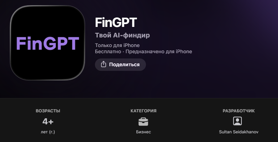 Fin GPT, который можно найти в App Store или Google Play, никак не связан с рассматриваемой нейросетью.