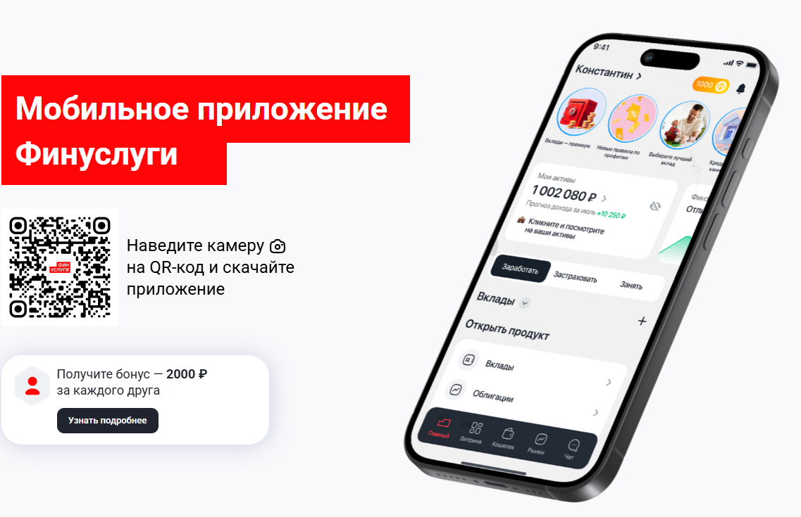 Ниже нам предлагают установить приложение, но на деле ИИ в нем нет. Это программа от Финуслуг, которые и причастны к созданию бота. Возможно, с помощью него они пытаются продвинуть свои основные продукты и услуги.