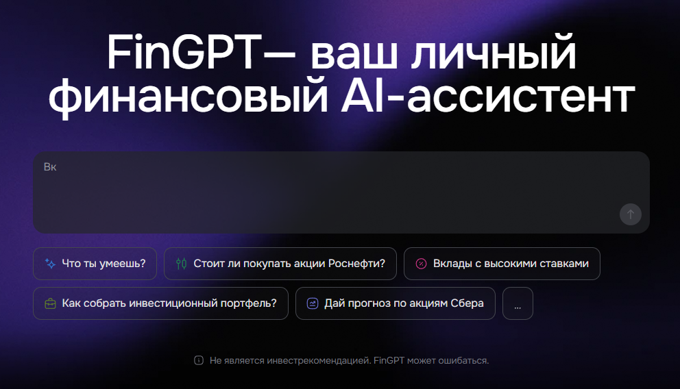 FinGPT – это нейросеть, созданная при поддержке Мосбиржи, которая анализирует финансовый рынок и помогает трейдерам и инвесторам получать ответы на интересующие их вопросы. Сервис якобы можно использовать как для общих советов о накоплении капитала, так и, например, для аналитики по какому-то конкретному активу. При этом в обоих случаях, по утверждениям разработчиков, ИИ должен отлично показать себя. Однако так ли это на самом деле, нам предстоит проверить далее.