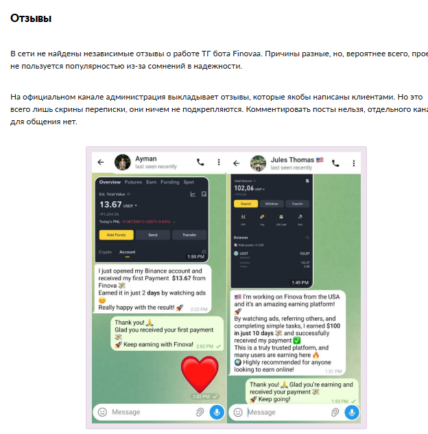 Мы подвели итоги анализа Finovaa и выделили причины, почему стоит избегать этого тг-бота: