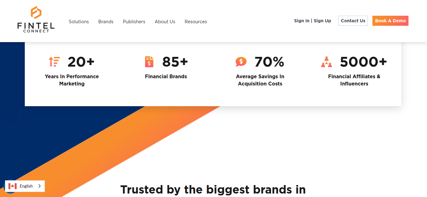 Следующая приписка — утверждения про обслуживание более 80 ведущих брендов. Здесь же представлено стратегическое партнерство с именитыми компаниями, например, Visa, American Bankers Association, VC, BankTech Ventures, and Economic Development Canada.