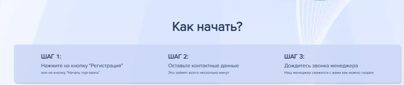 Все услуги брокера FinTradeGroup LTD доступны пользователям после создания аккаунта. Регистрация на сайте нестандартная. Для создания учетной записи необходимо нажать кнопку «Регистрация» или «Начать торговать». Далее в открывшуюся форму вносятся контактные данные. Личный кабинет предоставляется трейдеру после звонка менеджера.