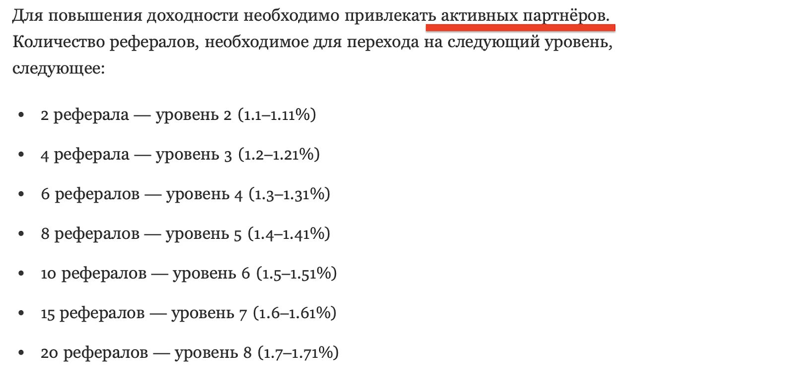 - Высокий процент возможен только при активных рефералах: без новых людей доходность падает.