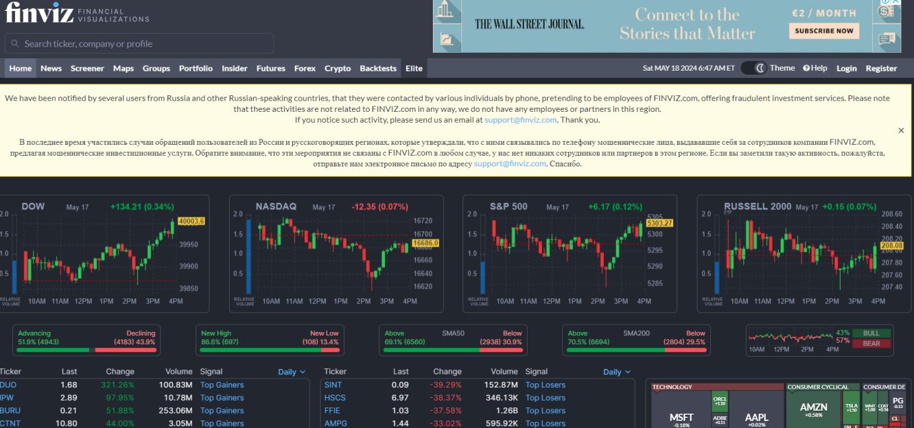 Finviz — это просто очередной псевдопрофессиональный сервис, который обещает трейдерам золотые горы, но на деле предоставляет устаревшие данные с задержкой в 15-20 минут. Отсутствие прозрачности, анонимные создатели и сомнительная репутация делают этот проект ненадежным для серьезных инвесторов.