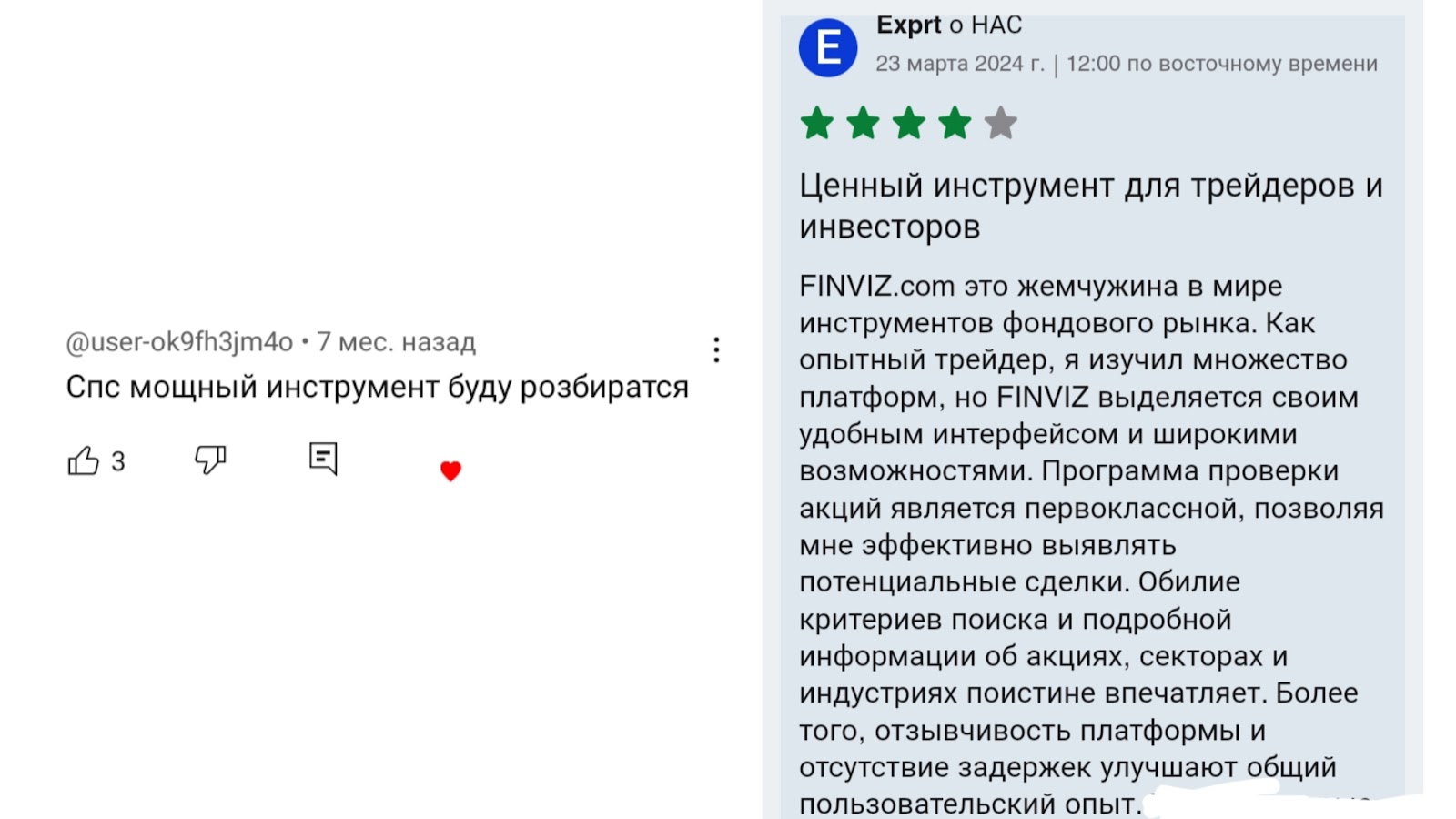 Отзывы клиентов об инструментах на FinViz com