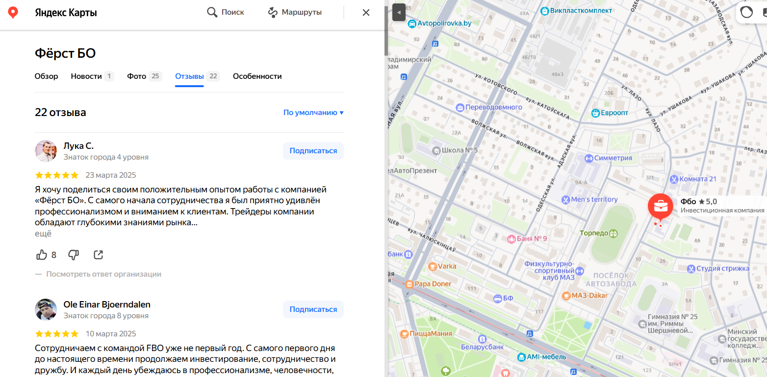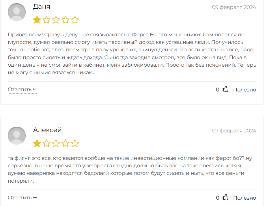 Отзывы об инвестиционной компании «Ферст БО» от реальных клиентов в Сети