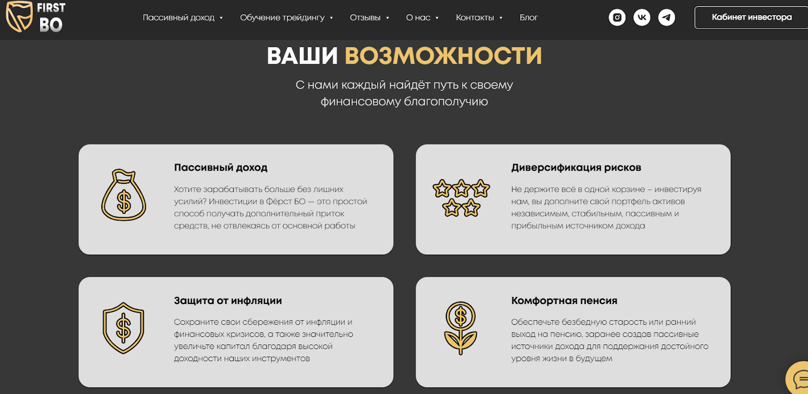 Обзор инвестиционной компании «Ферст БО»: отзывы об услугах сервиса First BO, анализ платформы для трейдеров и инвесторов FirstBO by