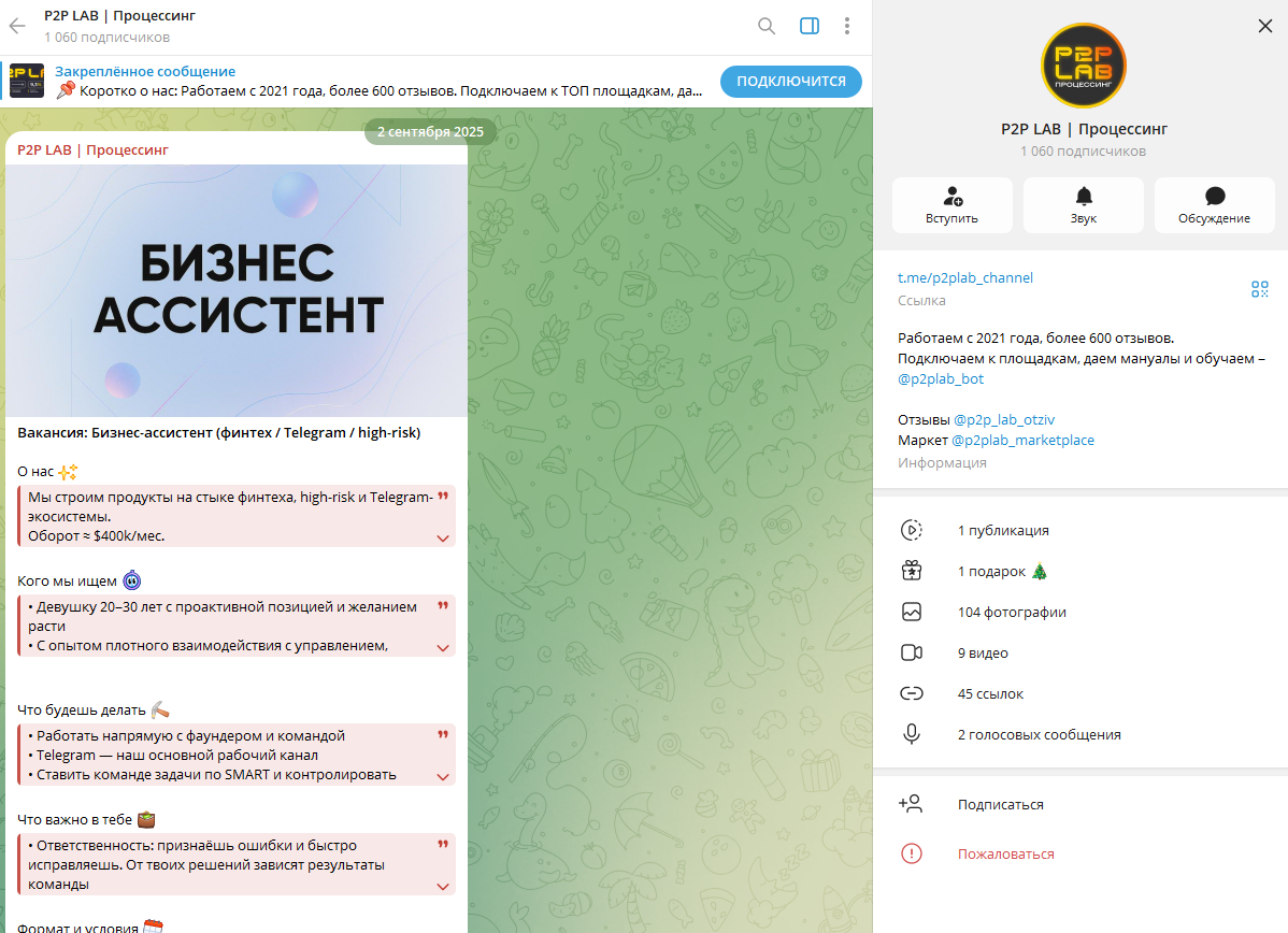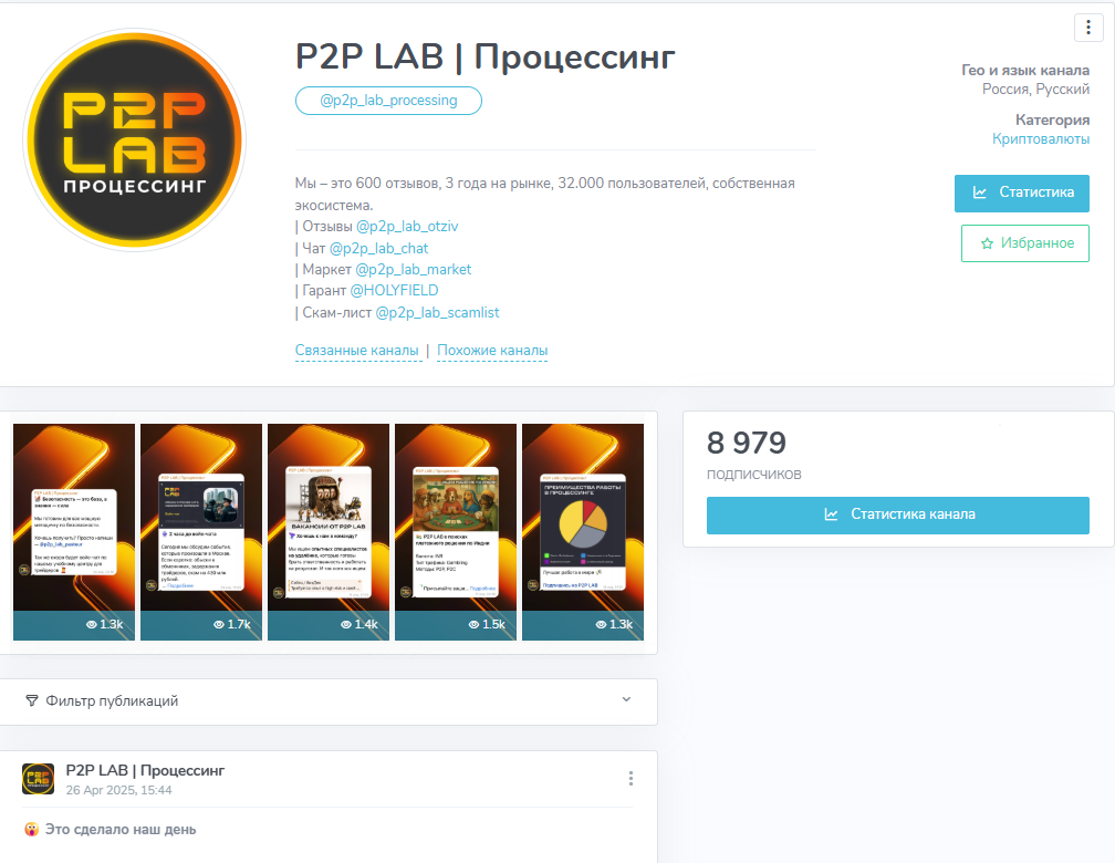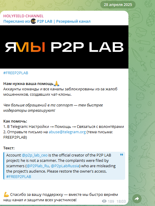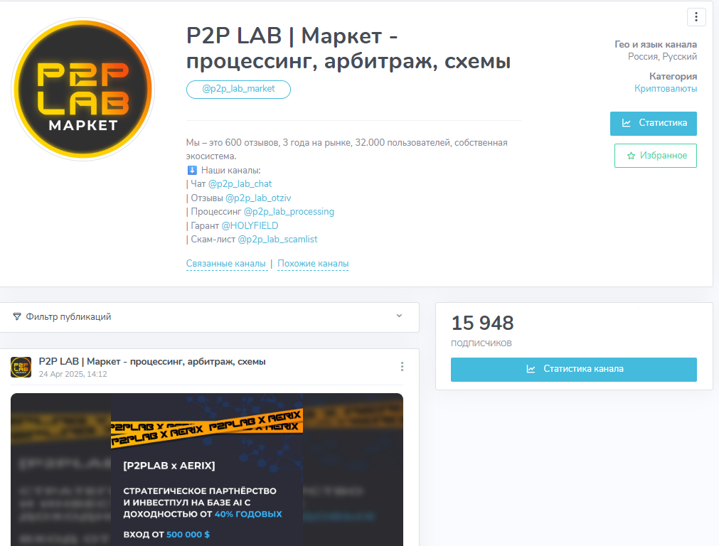 Обозреваемый канал связан с сетью P2P LAB. Посты в многочисленных клонах перестали выходить примерно с одного времени – весны 2025 года.
