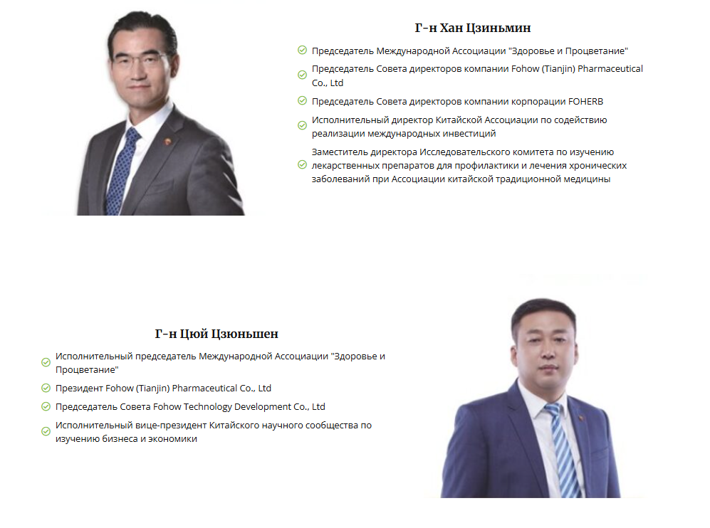 Однако в ходе детального исследования проекта в сети мы нашли упоминание руководящего состава компании. Хан Цзиньмин и Цюй Цзюньшен являются председателями совета директоров компании «Фохерб».