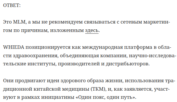 Также среди плюсов команда Whieda FoHerb упоминала неограниченный доход для партнеров. Все зависит лишь от пользователя. К списку преимуществ добавим еще якобы гарантию дохода. Однако важно понимать, что сама компания прибыль не генерирует и заработок зависит только от того, сколько будет новых рефералов. Последние должны партнерской ссылке купить товары для перепродажи и расширения сети.