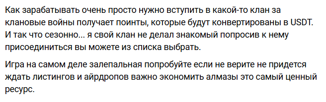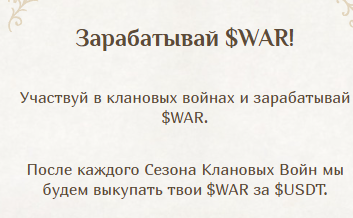 Что касается криптовалюты WAR, то получить ее можно только за победу в «клановых войнах». Доступ к ним предоставляется не сразу, а лишь после достижения игроком определенного уровня. Дойти до него будет почти нереально, если не «донатить», покупая «алмазы».