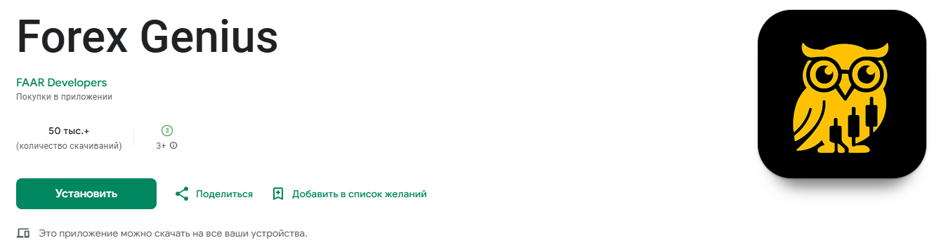 Что же касается Forex Genius, то это более популярное приложение. Например, в Гугл Плей оно собрало более 50 тысяч скачиваний. В App Store статистика намного скромнее. Информации по количеству установок нет, но есть всего 5 оценок. При этом 2 из них, судя по всему – 1: