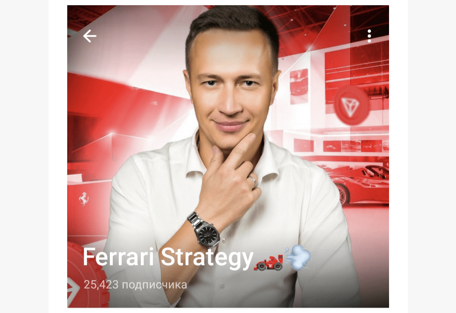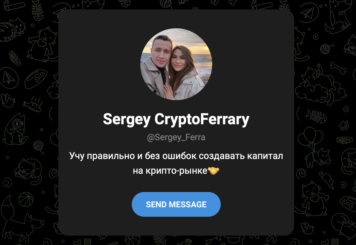 Сергей «Крипто Феррари» — трейдер, ведущий сообщество в телеграм, посвященное торговым сигналам и торговле на криптовалютных активах. Автор проекта представляется опытным финансовым аналитиком, коучем и создателем «уникальной» стратегии трейдинга с гарантированной доходностью.