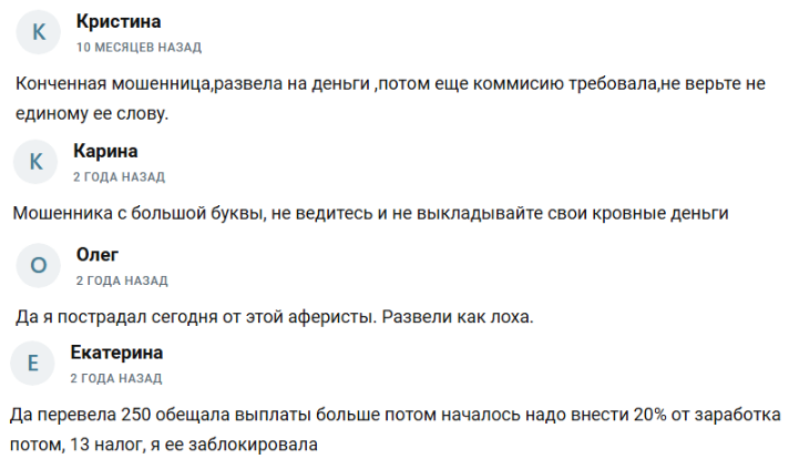 Большинство жалоб касается этапа дополнительных платежей. Пользователи утверждают, что после первой «комиссии» появляются новые требования: заплатить за ускоренный вывод, за международный перевод или за разблокировку кошелька. Каждое следующее перечисление денег больше предыдущего, но при этом ни одно из них не приближает вкладчика к выводу средств.