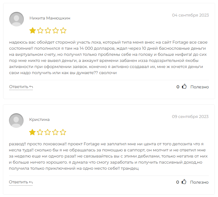Отзывы пользователей о работе компании Fortage