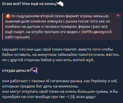 Тг Fox Crypto публикует материалы о криптобиржах и новых проектах. Автор делится мнением об инвестициях и рассказывает, как торговать на разных платформах. Много постов посвящено Grass, MetaMask и различным дропам. Материалы выходят нерегулярно. Иногда по несколько в день, иногда недельные перерывы.