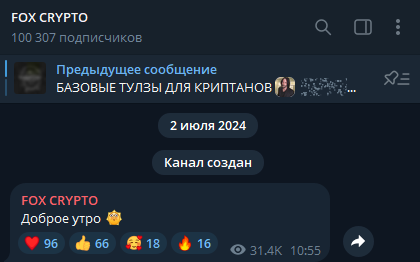Тг Fox Crypto стартовал 2 июля 2024 года. Мы взялись за разбор из-за странной накрутки и отсутствия реальных отзывов. В этом обзоре расскажем о возможностях канала и его настоящей репутации.
