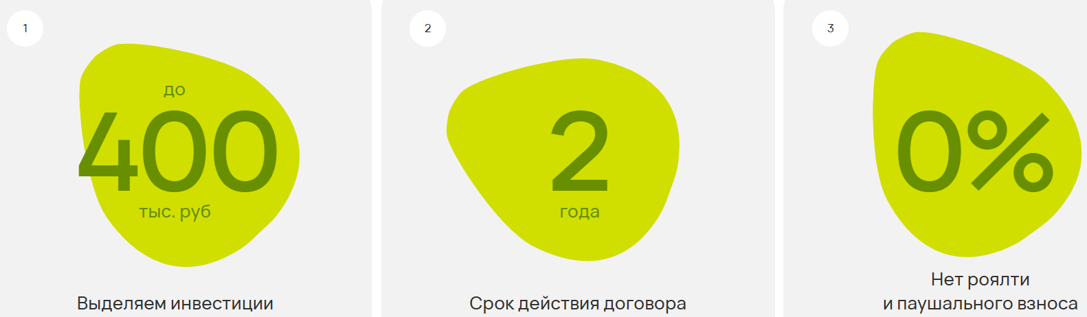 Паушального взноса у франшизы нет, что является большой редкостью для подобного предложения. Также франчайзи не должен платить роялти: Сладкая Жизнь зарабатывает на поставках товаров в новые магазины, открытые по франшизе. Покупателям франшизы обещают следующие опции: