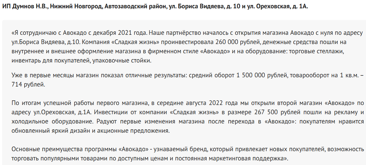 Есть те, кто перевел на франшизу свой уже работавший магазин, они также говорят об успешной работе с Авокадо.