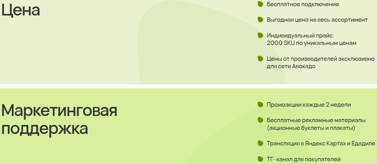 Франшиза Авокадо — одно из множества предложений в нише продуктовых магазинов, у него нет серьезных минусов. Из плюсов можно выделить следующие моменты: