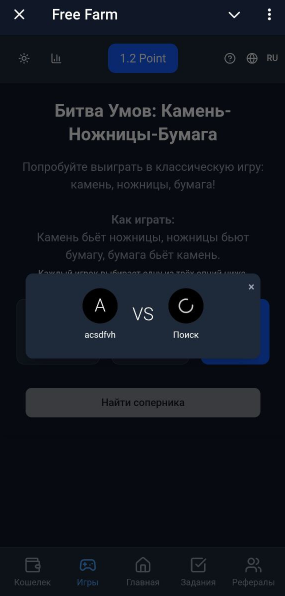 Free Farm Online Bot — очередная пустышка с анонимным разработчиком и отсутствием четких правил. Минимальный вывод в 50 Points (100-120 рублей) и долгий поиск соперников в игре «Битва Разума» только подтверждают низкую активность и сомнительность проекта. Не тратьте время на этот недоразумение.