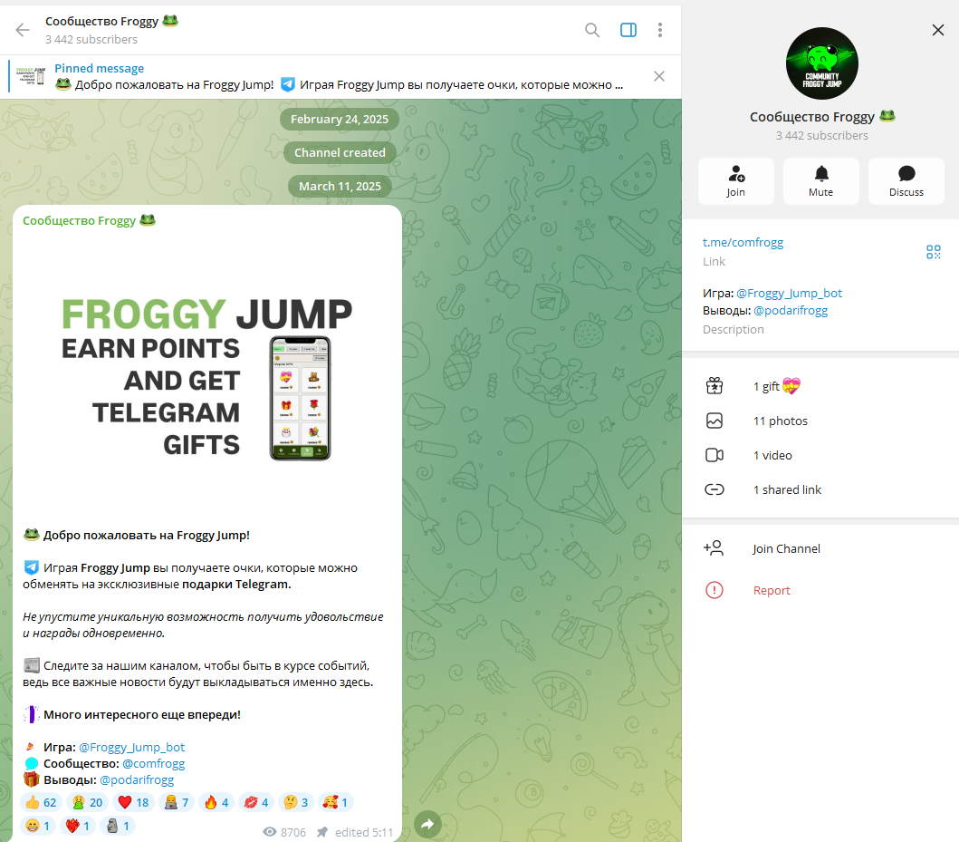 Общая информация о Froggy Jump в Telegram