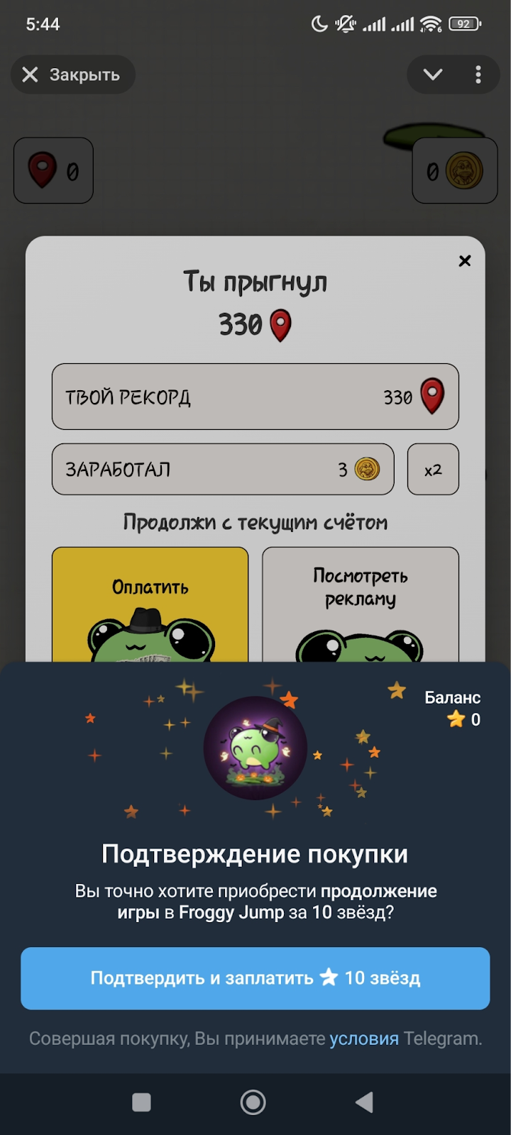 Froggy Jump – очередная пустышка, обещающая лёгкий заработок, но на деле лишь тратит ваше время. Чтобы накопить 40 тысяч монет на самый дешёвый подарок за 15 звёзд (около 27 рублей), придётся играть целый день. Донаты часто не доходят, а призы – дешёвые и бесполезные. Очередной развод для наивных.