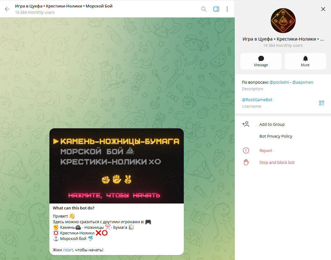 У первого овнера есть еще 1 бот – игра в цуефа: