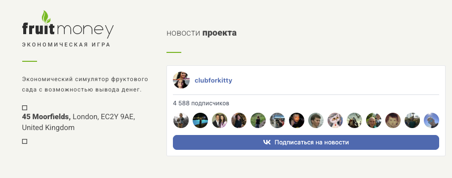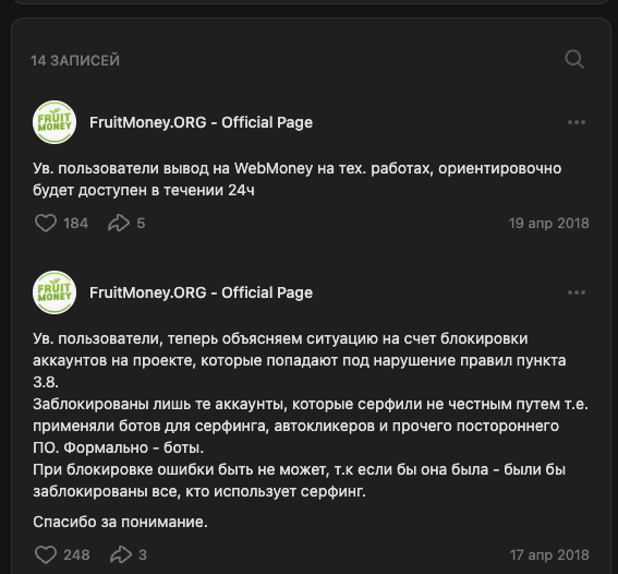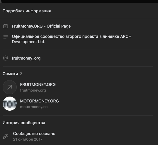 А также 2 сообщества в ВК. В 2026 году функционирует только сайт fruimoney org.