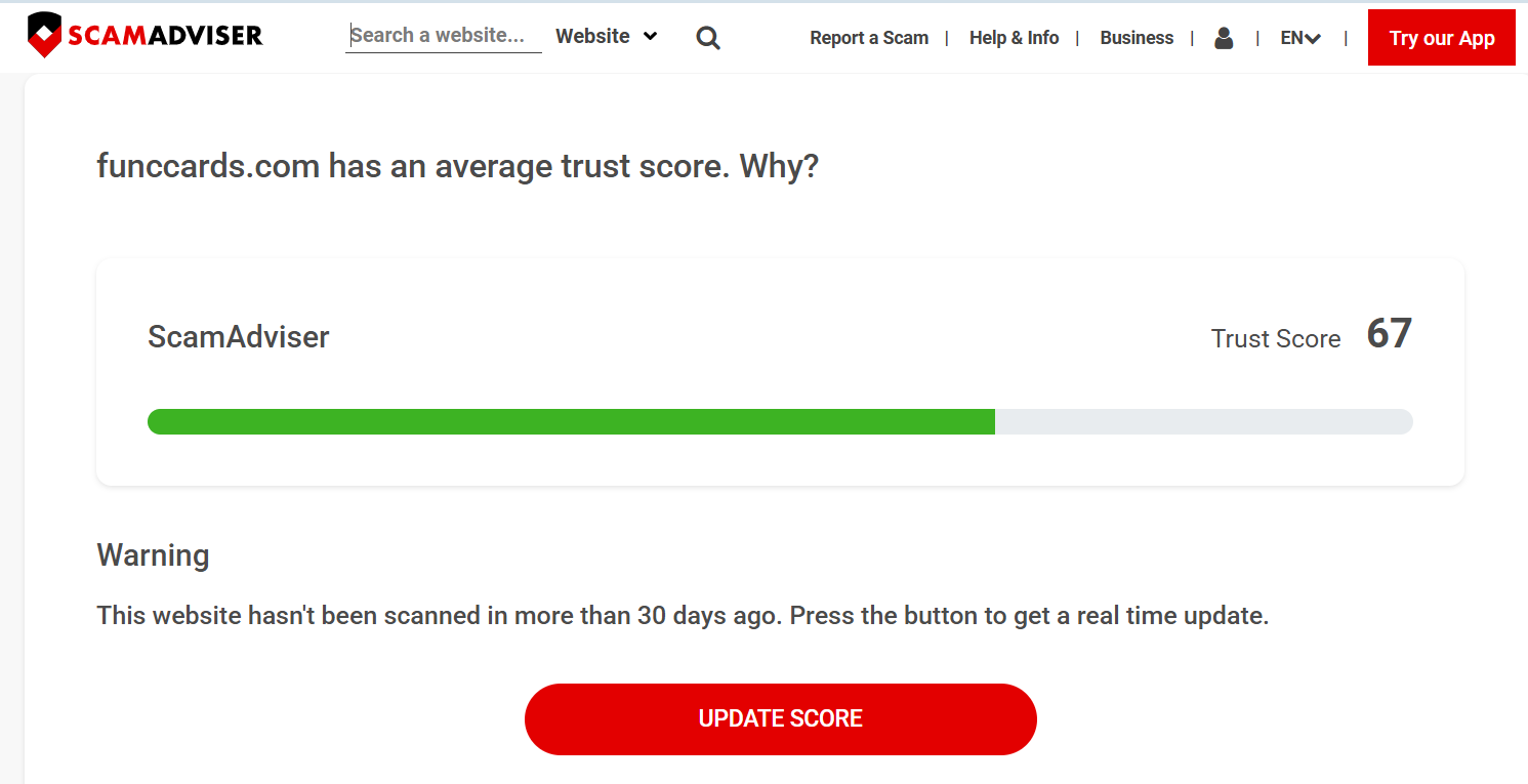 В открытых источниках нет жалоб, но нет и позитивных историй с конкретикой. Единственное, что удалось найти это техническая оценка ScamAdviser, где сайт получил средний показатель доверия 67 из 100.