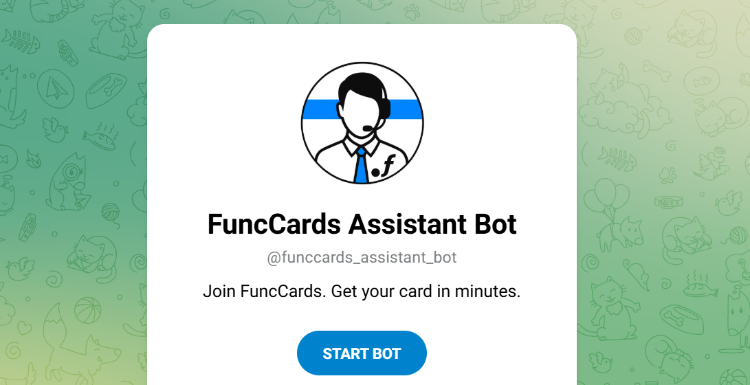У проекта есть бот FuncCards Assistant Bot через который предлагается регистрация, выбор языка и первичное знакомство с сервисом. Это скорее вспомогательный канал, чем полноценная платформа общения.