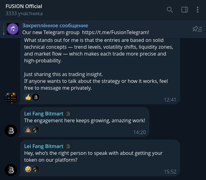 - Чат FUSION Official в Telegram часто превращается в «стену плача», где застрявшие в активе холдеры пытаются узнать хоть какие-то новости.