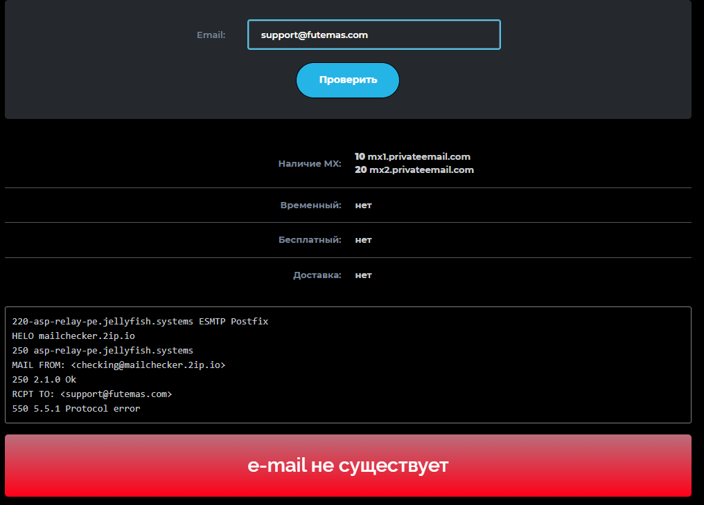 Если рассматривать реальные данные о работе, то биржа Fute ms не предоставляет пользователям достаточное количество информации о своей деятельности и условиях торговли. В частности, данные о терминале практически отсутствуют, как и о его возможностях. Трейдерам обещают доступ к финансовым рынкам, торговле акциями, металлами, криптовалютой, индексами и прочим. Но при этом данные о спредах, комиссиях и других важных элементах утаиваются. Если есть необходимость связаться с администрацией, то сделать это можно через электронную почту support futemas com. Проверка показывает, что данный адрес не зарегистрирован.