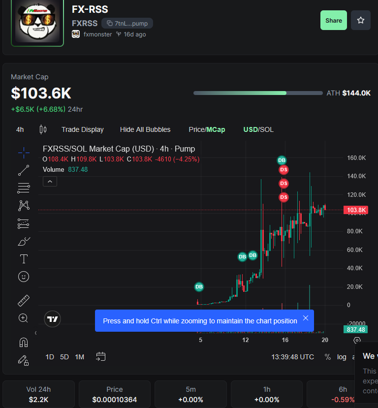Этот FX RSS Bot – очередная замануха: анонимный автор, обещания 10% в месяц, а торгует только своим токеном FXRSS с 105 держателями.