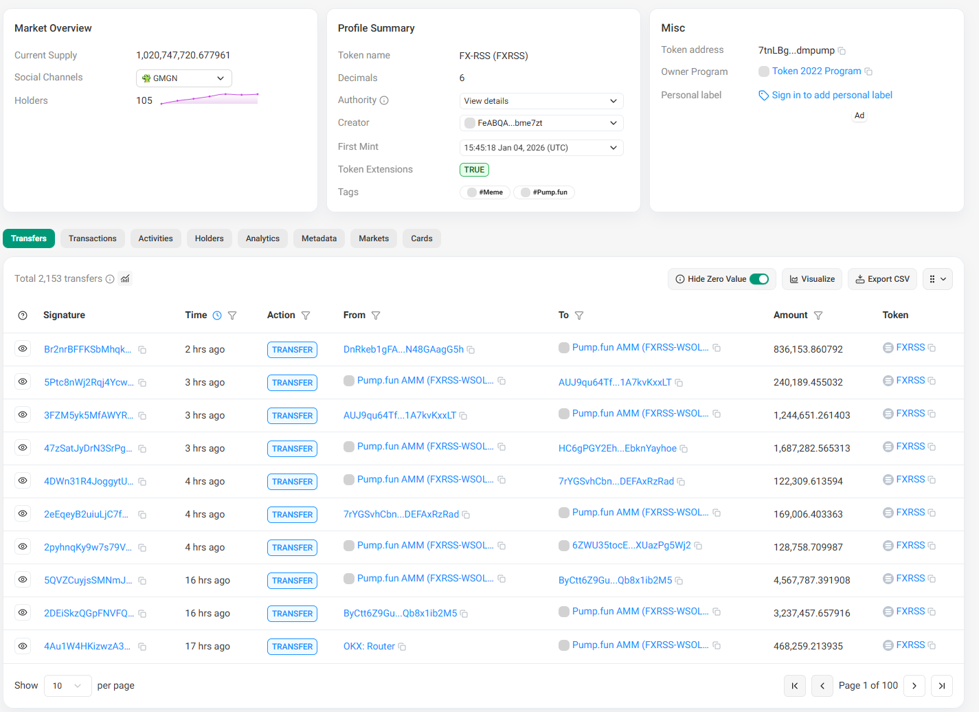 FX RSS Bot — очередной «гений» трейдинга, обещающий 10% в месяц, но без отзывов и с токеном, который держат 105 человек. Похоже на скам.