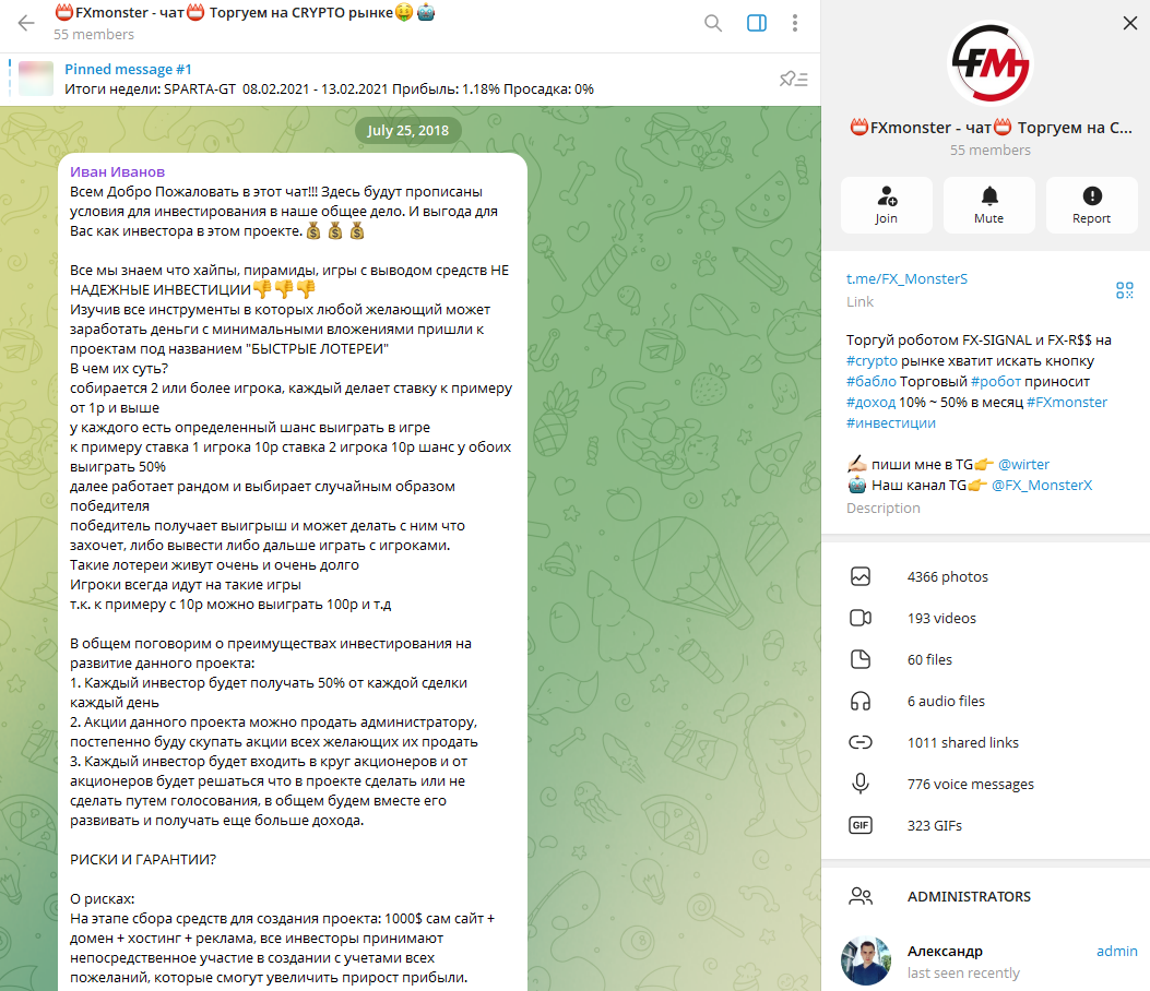 А вот чат, который используется автором, был раньше посвящен заработку на какой-то сомнительной инвестиционной игре. Вел его некий Иван Иванов.
