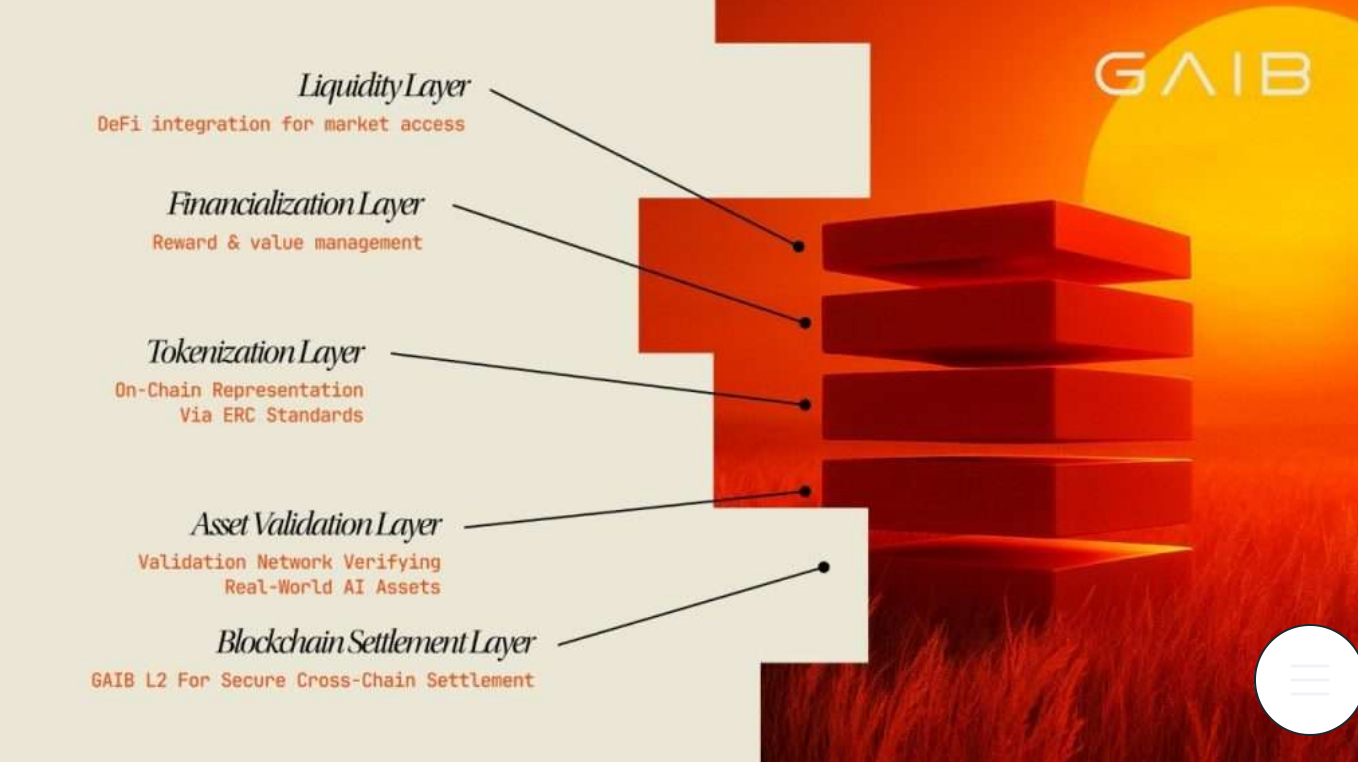 - Уровень ликвидности интегрирует активы GAIB в DeFi, отвечает за ликвидность. На этом уровне выполняется финансирование, кредитование и создание финансовых активов, подкрепленных токанами ИИ.