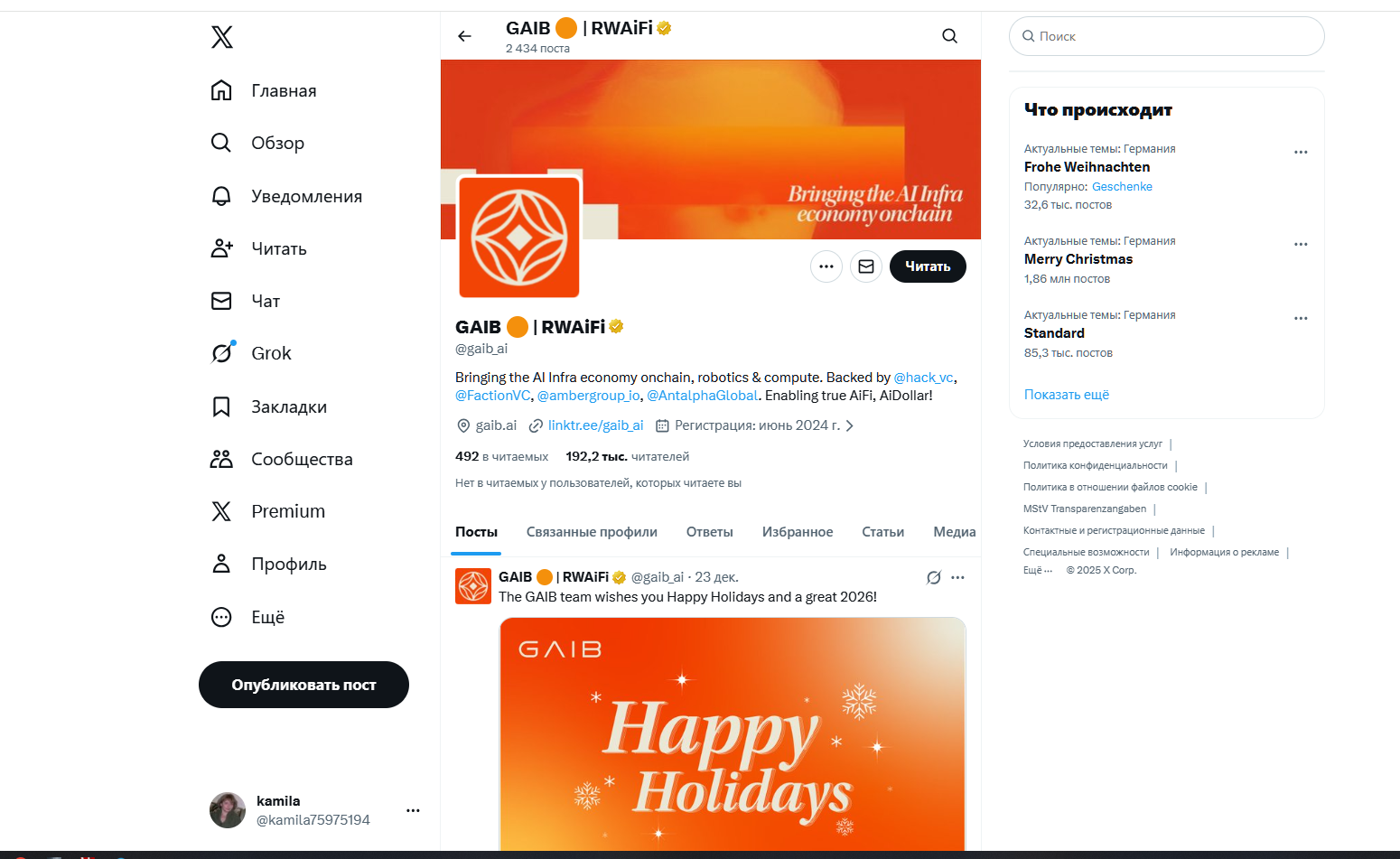 В сети X группа держателей токена GAIB RWAiFi намного больше. Аудитория проекта 192 200 участников из разных стран.
