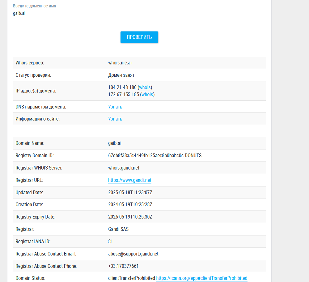 Компания разработчик имеет официальный сайт gaib.ai, но информация представлена только на английском языке. Сайт зарегистрирован в мае 2024 года. что совпадает с временем запуска токена.