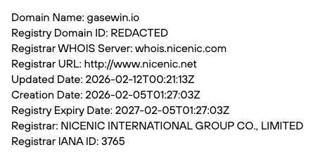 На главной странице веб-ресурса пишут, что платформа «Гасе Вин» основана еще в 2017 году. Чтобы в этом убедиться, наша редакция запросила данные домена Gasewin Io из WHOIS.