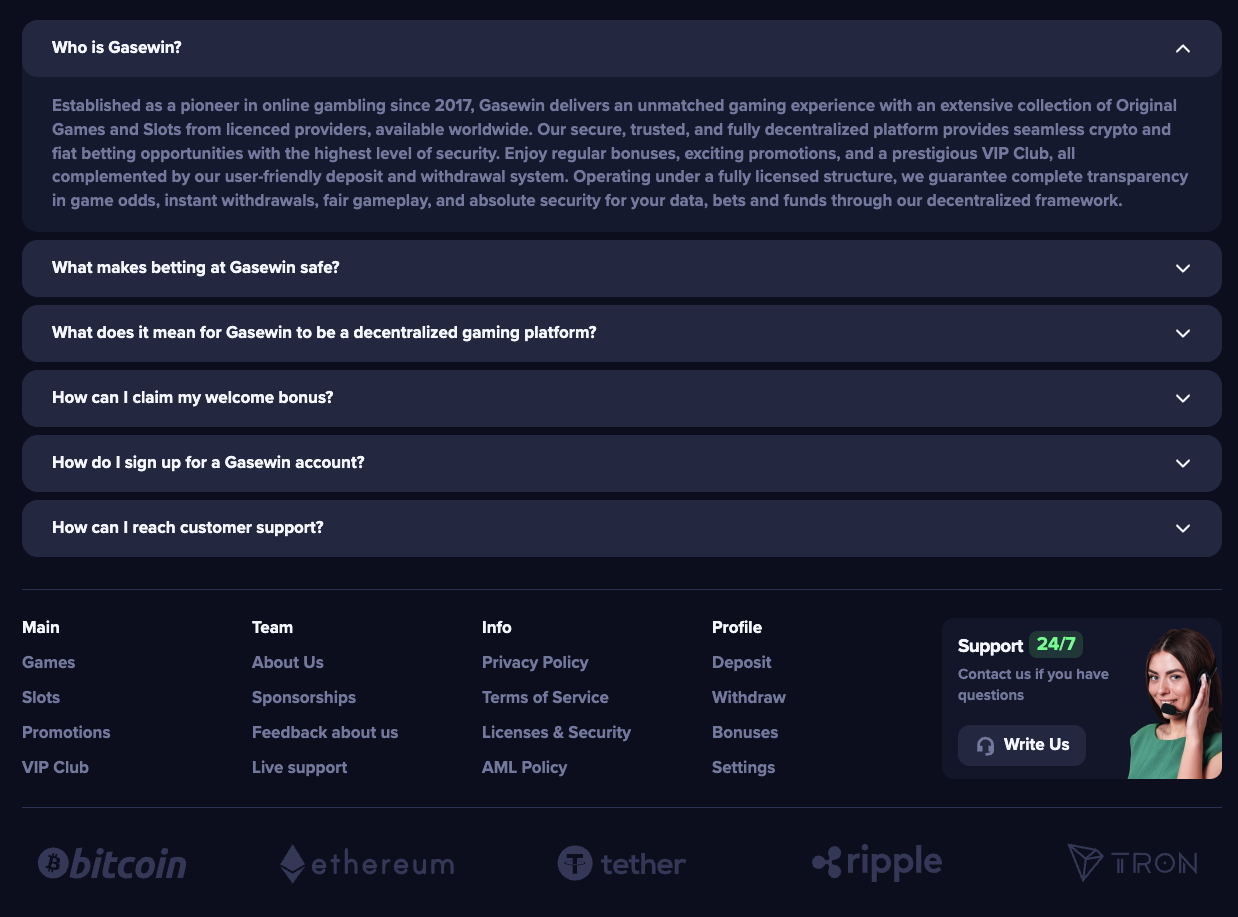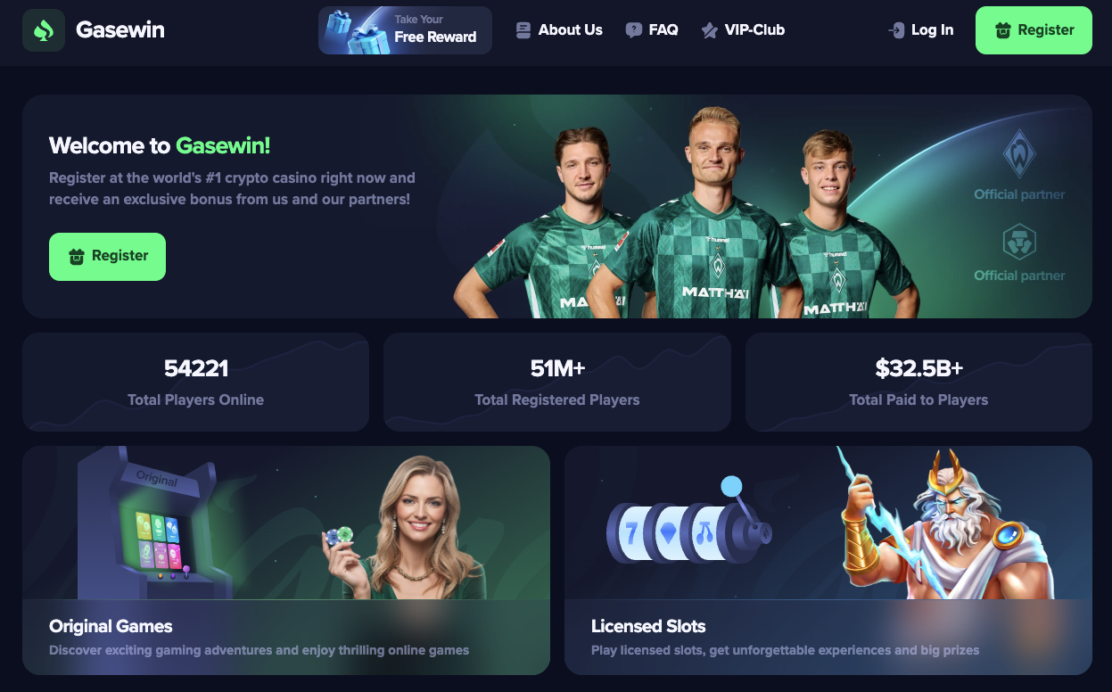 GaseWin Io — игровая платформа, которую ее создатели позиционируют как одну из лидирующих в области децентрализованного онлайн-гейминга. На сайте интернет-казино пишут, что площадка работает с 2017 года. Клиентская база платформы якобы настолько велика, что на момент написания этого обзора онлайн на ней составлял 54,2 тысячи игроков.
