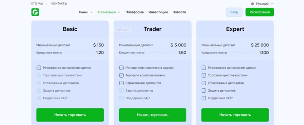 - trader (для опытных инвесторов) – вложения от 5 000 долларов;