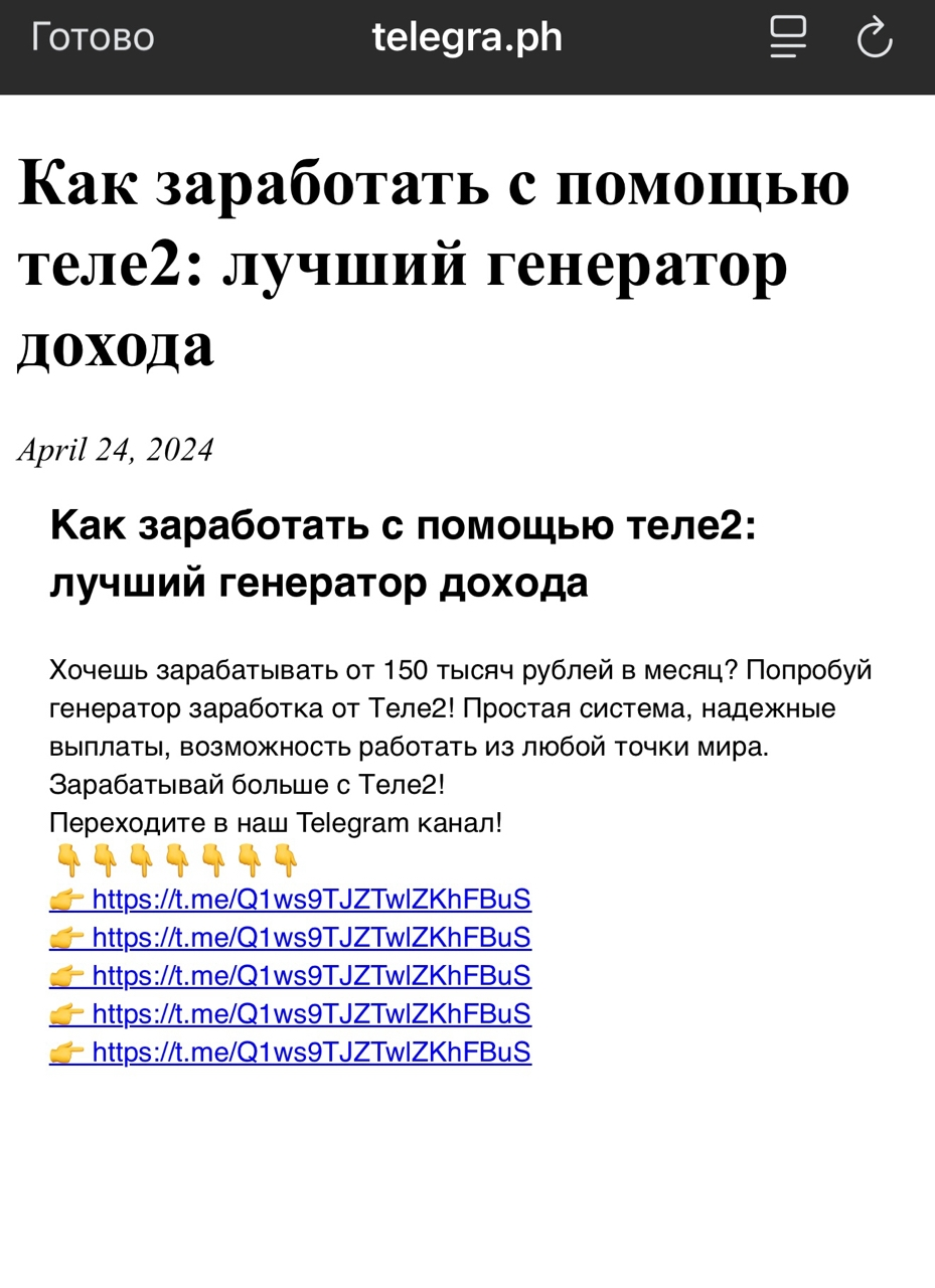 На самом деле четкой информации, что такое «Генератор заработка Теле2» нет. В кратком описании проекта в посте в Telegraph сказано, что пользователи могут зарабатывать до 150 000 рублей в месяц.