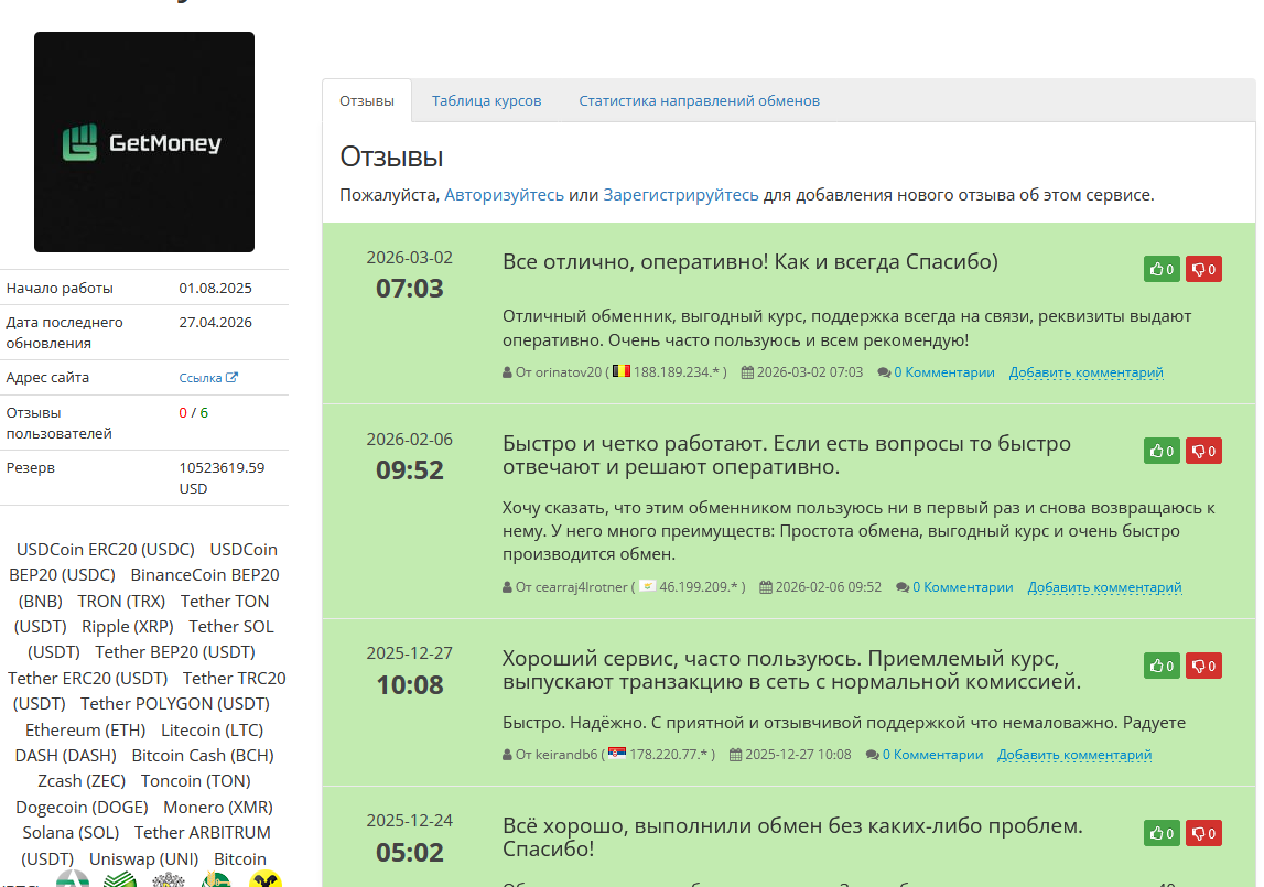 - Обменник Get Money Top размещен на большинстве крупных мониторингов надежных сервисов и криптофорумах;