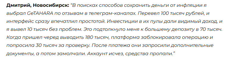 Getahara – очередная ловушка для доверчивых: обещают золотые горы, а в итоге блокируют аккаунты и оставляют людей без денег.