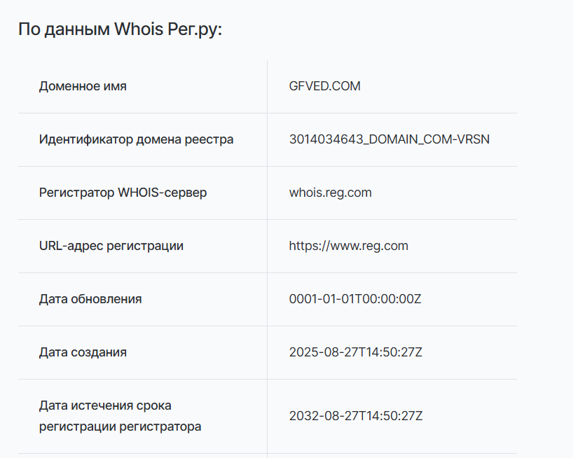 Global Finance Ved утверждает, что работает на рынке три года, но домен зарегистрирован лишь в августе 2025 года. Отсутствие регистрации в реестре ЦБ РФ и анонимность основателей вызывают серьезные сомнения в легальности и надежности сервиса.