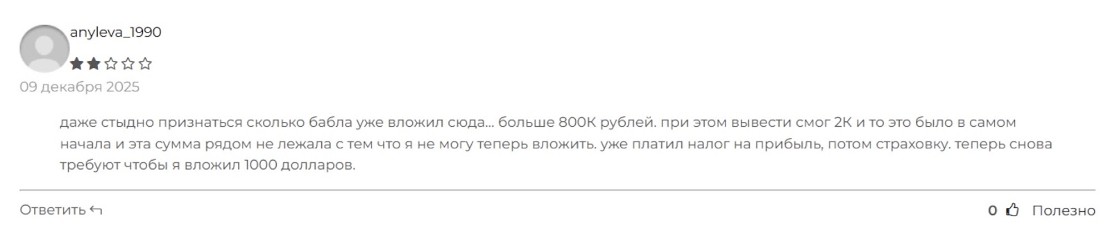 В комментариях говорится о том, что вложенные клиентами деньги администрация не позволяет выводить. При этом перманентно создаются условия в виде уплаты налога, комиссий и прочих дополнительных взносов. Однако это ведет только к еще большим безрезультатным тратам.