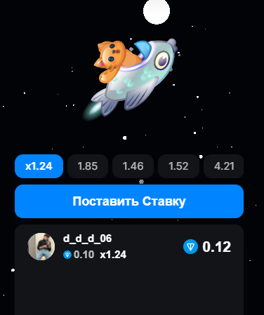 Но не обходится и без обычного казино. Внутри бота реализована популярная краш игра с ракетой: