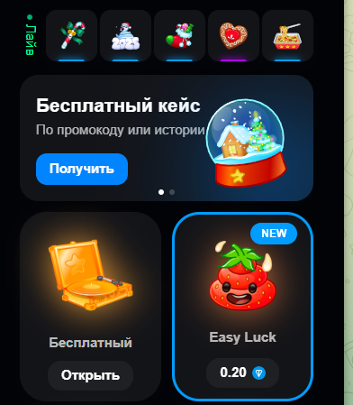 Это своего рода гача, в которой можно выиграть TON или определенный гифт. Кейсы можно открывать и за ТОН. Самые дешевые стоят 0,2 ТОН, а самые дорогие – 75.
