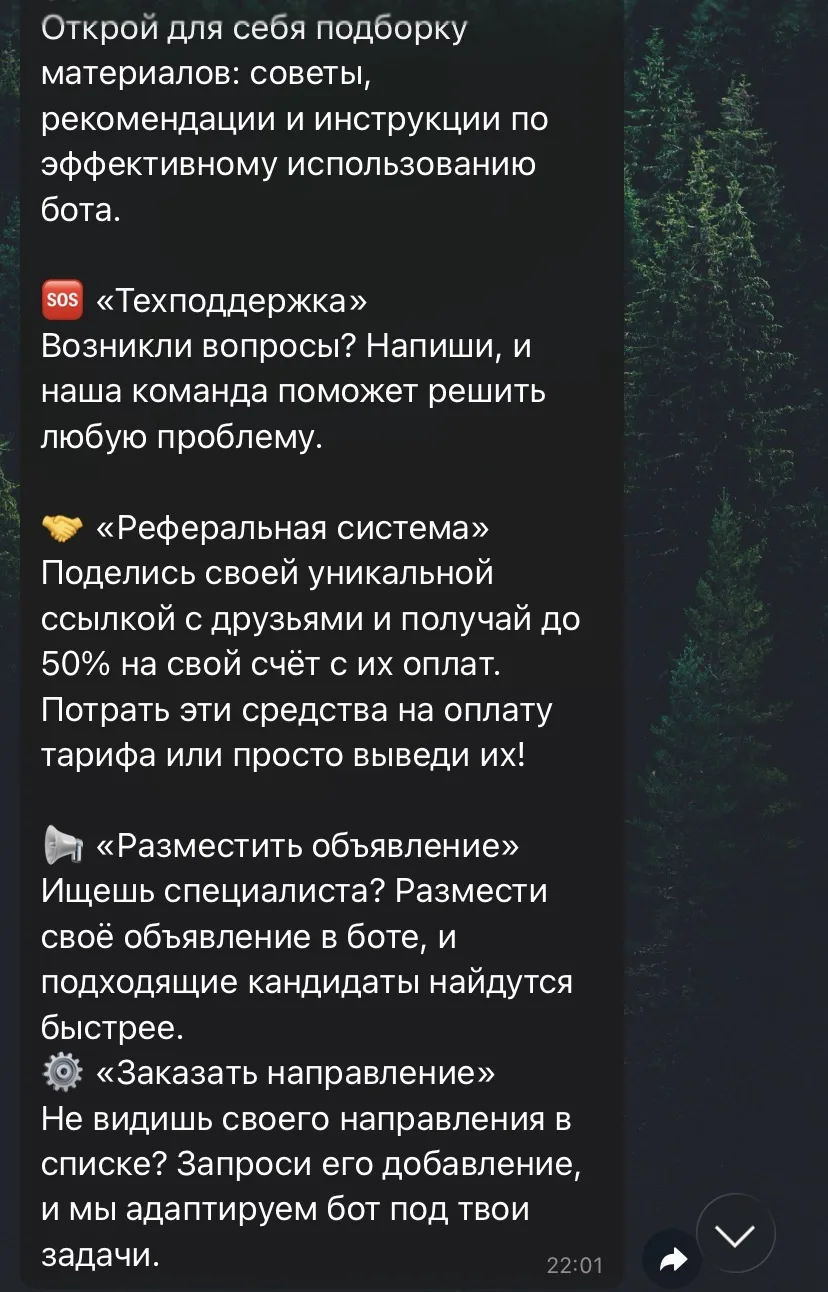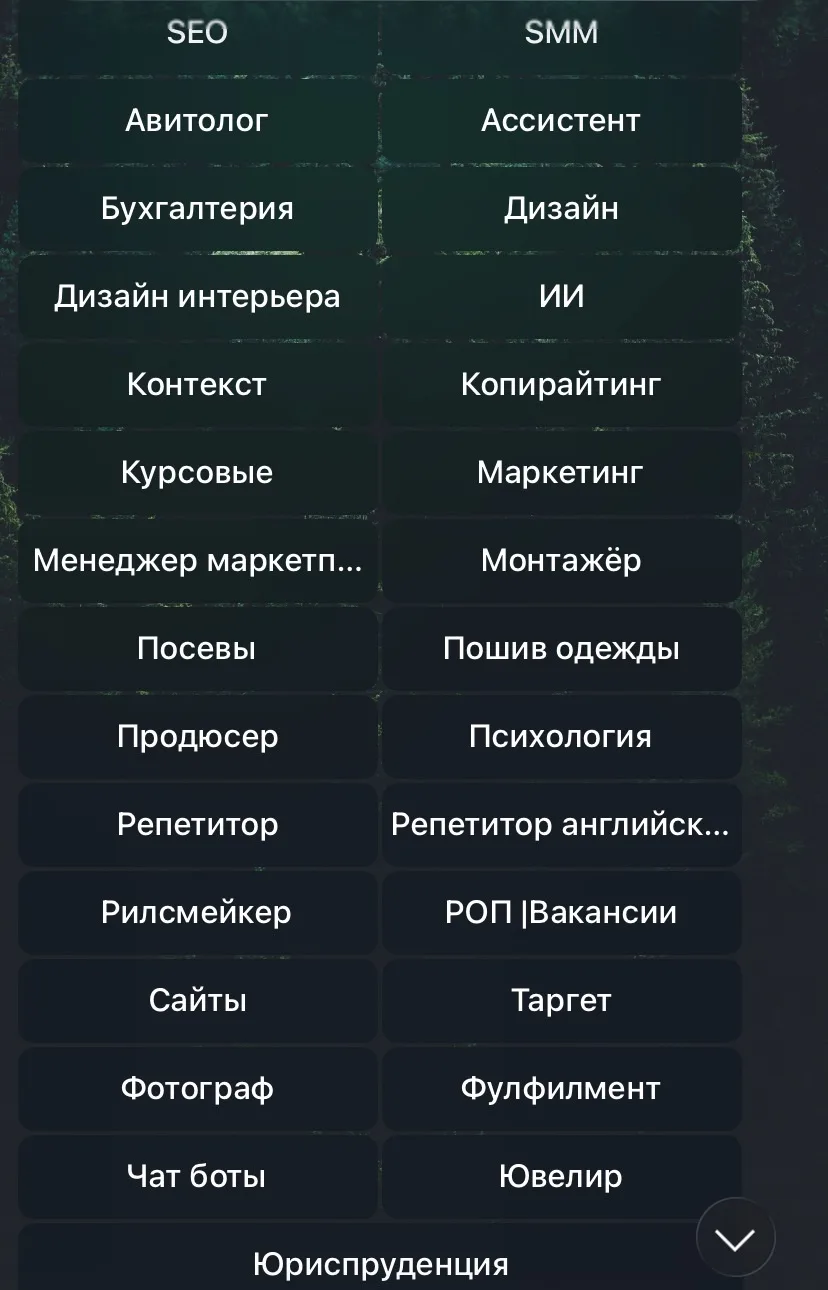 Для работы клиентам Golubin Bot доступно 29 категорий занятости. Сюда входят дизайн, копирайтинг, маркетинг, репетиторство, таргет, юриспруденция и многие другие. В случае отсутствия необходимого направления в категориях, пользователь может запросить его добавления в перечень.